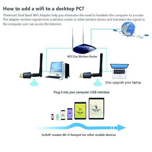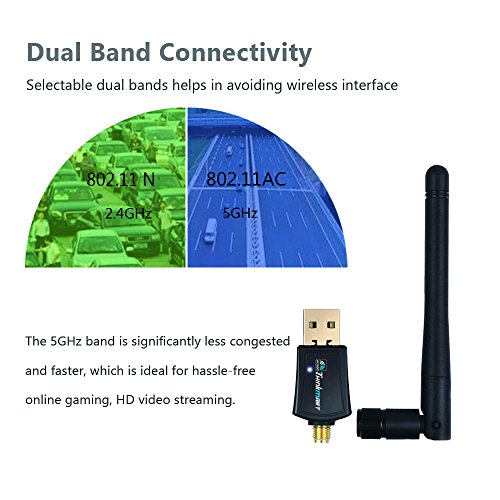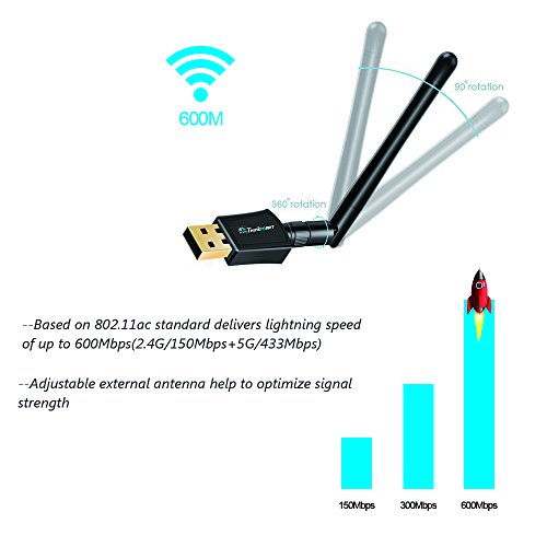 Thinkmart 600Mbps Dual Band USB WiFi Adapter 802.11ac 2.4G/5G Wireless Network Adapter Antenna for Desktop Laptop, Support WinXP/7/8/8.1/10(32/64-bit), Mac OSX 10.4-10.12, Linux 4.1-4.4, 5.0