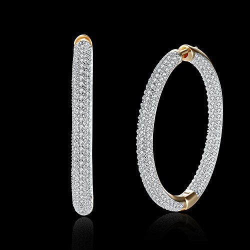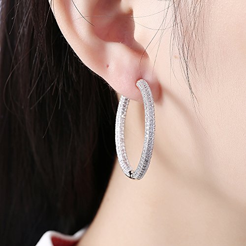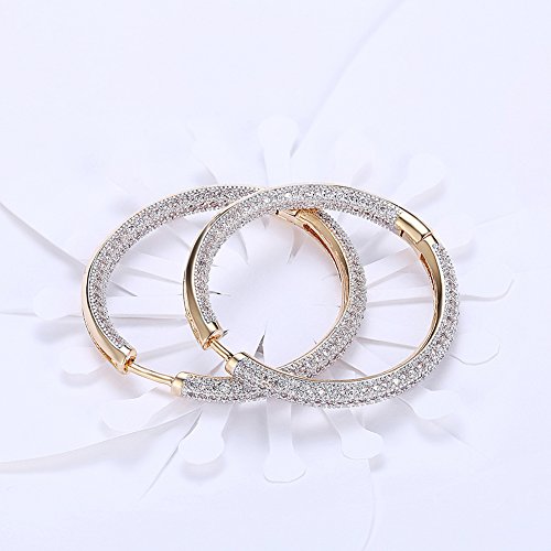 Medium Size Hoop Earrings, Size in 34mm, with shiny cubic zirconia. Highest Quality Craftsmanship. Special Style Make You Charming And Attractive!