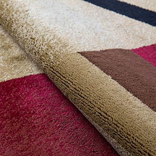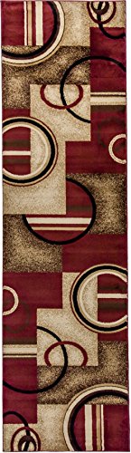 Well Woven Barclay Arcs & Shapes Red Modern Geometric Area Rug brings together an array of patterns drawn from a carefully selected palette of Modern, European, and Persian Styles. Warm red, green, and blue jewel tones are accented by neutral tones of ivory and beige. The heat set polypropylene fiber gives a 0.4" pile that is soft, stain resistant, and doesn’t shed or fade over time. The 100% jute backing is safe for wood floors and all four sides of the rug are serged for improved durability. A wide range of shapes, sizes, and designs means this collection has something for rooms of every size and styleFeature