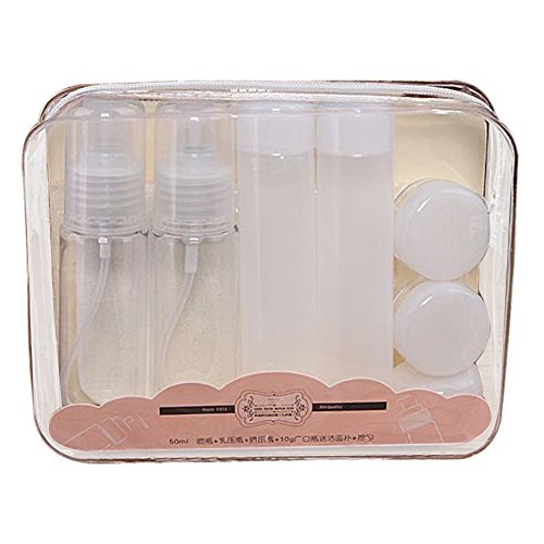 - COMPLETE TRAVEL SET - one 50ml spray bottle,one 50ml squeeze bottle, two 50ml lotion bottle, three 10g creams bottles,one spatulas, one facial puff sponge, one funnel, one zipper pouch