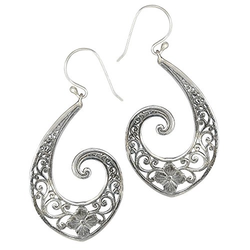 Sterling Silver Balinese Spiral Filigree Flower Bali Earrings