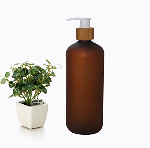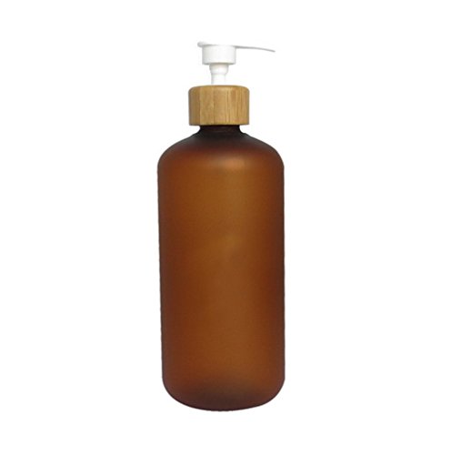 500ml Bamboo Cap Amber Frosted Plastic Lotion Cream Pump Bottle Shampoo Body Wash Empty Container