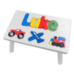 Studio : Baby Kids Bargains Publisher : Baby Kids Bargains Binding : Office Product Product Description Learning is Fun This adorable step stool is a great gift idea for your child. Sturdy, useful and super fun for kids to play with over and over again. The puzzled letters of their name and fun transportation themed symbols create an excitement for letter recognition and hand eye coordination. Choose the finish and letter color you like, and well create a wonderful item your child will love. 0