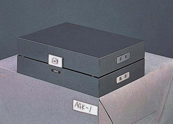 丈夫なスチール製の決裁箱です。折りたためて、コンパクトです。