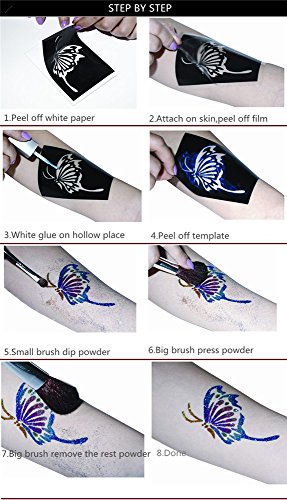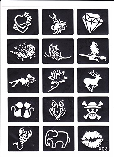 Studio : VEAMOR Publisher : VEAMOR Binding : Misc. Product Description PRODUCT DESCRIPTION: NAME: 102PCS Body Glitter Temporary Tattoo Stencil Kit NET WEIGHT: 100G SIZE: 21CM*29CM QUANTITY: 102PCS/LOT