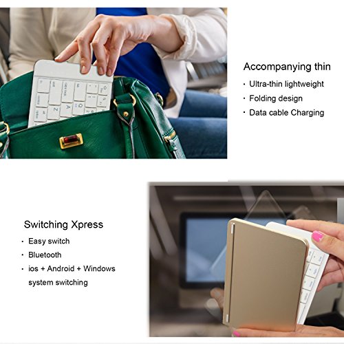 A foldable Bluetooth 3.0 wireless keyboard, pocket size, sleek and slim design, made of Aircraft-grade aluminum for superior rigidity, light and quick heat dispelling, you can use it everywhere by carrying it in your pocket