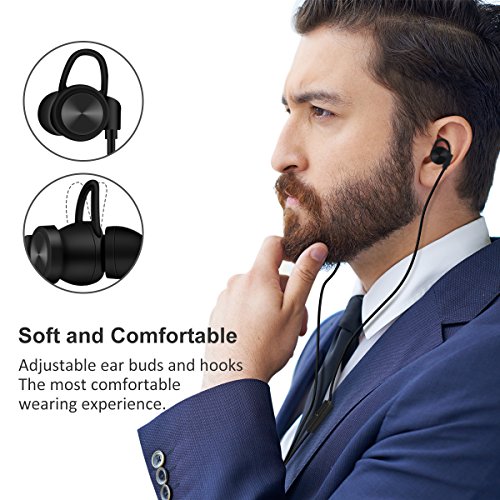 [Built-in Mic & Long Lasting Time] The built-in mic on the earbuds achieves hands-free talking. The wire from the controller to the earbuds is about 100cm long, so you can listen to music or answer a phone call with the controller put in your pocket. Besides, a clip is equiped on the controller. The stronger battery provides up to 6-hour music and 7-hour talk time at 70% volume, up to 4.5-hour talk/music time at 100% volume, and up to 180-hour stand-by time with a single charge of 2 hours.