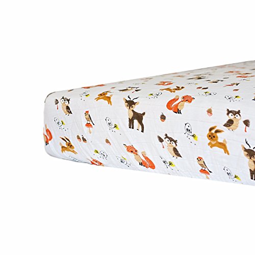 Kadut Kids Crib Sheet Set, 1 Pack, 100% Soft Muslin Cotton- Fitted Bed Sheets- Unisex Forest Friends with Elastic Band,Durable-Fits Standard Crib...