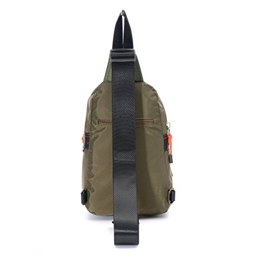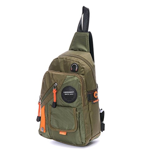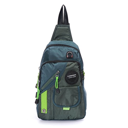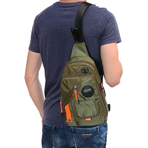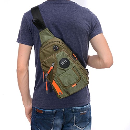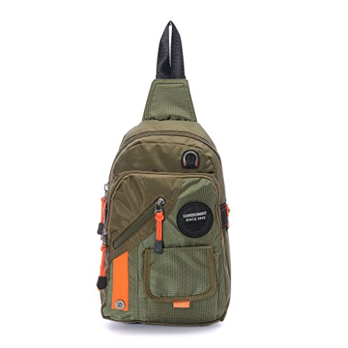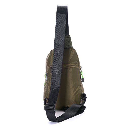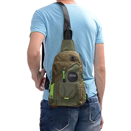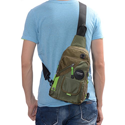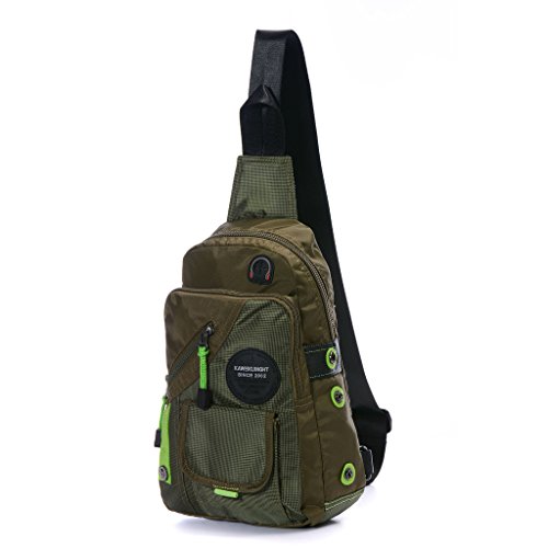 -. Feature : Fashion, multi-function and practical design, and comfortable to wear / With a cross body adjustable strap ,the shoulder strap is adjustable and has three loops, which you can use the bag as a chest bag or messenger backpack on your right or left according to your preference. 1 back zip pocket. / Dimensions: 22*10*30cm/8.7*4.2*11.2inch(L*W*H), Three colors can choose, bLack, army green and dark green. / Closure Type: zippers. The main pocket csn hold your Ipad,cellphone, first aid supplies ,journal,1 separate side pouch, 1 deep zipper pocket can hold your cash. A earphone hole connected the main bag, which looks very fashion and cute. / 7 pockets in total.Great for Travel Hiking,Leisure or Outdoor living,sports. Mini Backpack Chest Bag for Men and Women.