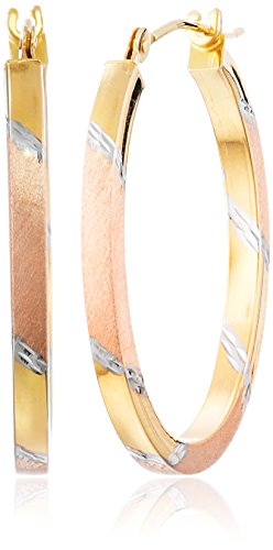 Oval hoop earrings crafted from 14k gold in rose, yellow, and white tones