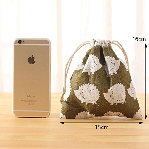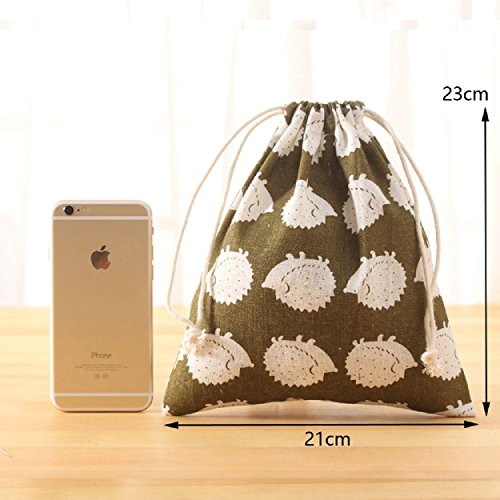 -. Feature : Set of 3 Sizes Cotton Travel Storage Bags Drawstring Bags / Material: pure cotton / Size: 32x24cm (large), 24x16cm (medium), 16x14cm (small) / 5 pattern available: hedgehog, national, white bear,grove, whale / Pure cotton handmade articles, more soft comfortable and healthy.