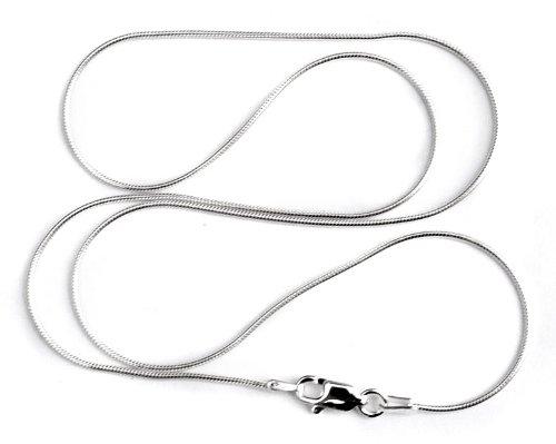 Sterling silver 1mm snake chain necklace. This chain size is recommended for wearing with smaller charms, and is the thinnest snake chain we offer. Also looks great when worn alone. Made in the USA. Available in 16", 18", 20" and 24" lengths. Satisfaction guaranteed.Feature
