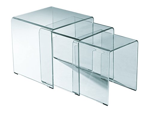-. Title : Rainbow Home Furniture CT-397 Bent Glass Nesting End Table Set, 3-Piece, Clear
