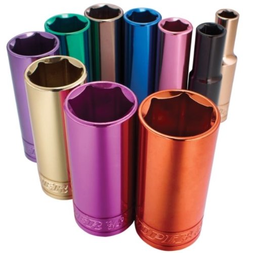Viper Tool Storage VT10CSSAE 3/8-Inch DR SAE Deep Sockets, 10-Piece, Color Coded