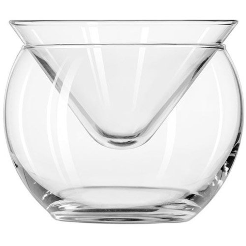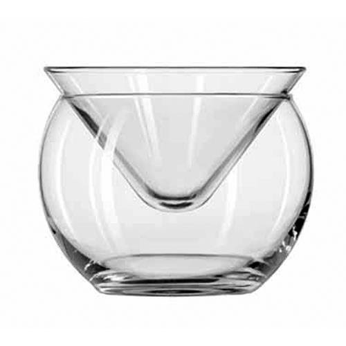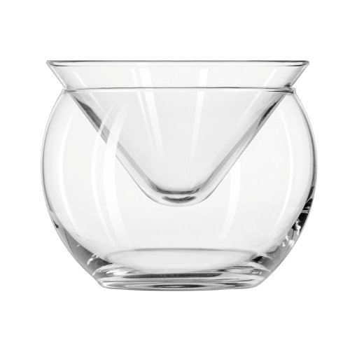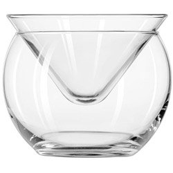 Studio : Libbey Publisher : Libbey Product Description Libbey 6 oz Martini Chiller Glass This two-piece martini chiller glass consists of a traditional cone-shaped 6 oz martini glass head, minus the stem, and a chiller bowl that you set the glass head into when not in use. This glass also comes with Libbey's Safedge rim guarantee, their promise that if the rim on this glass ever chips, you can return it to the dealer where you bought it and have it replaced. Capacity: 5.75 oz Height: 3-1/2" Top Diameter: 4-1/4" Bottom Diameter: 2-1/2" Maximum Diameter: 4-3/8" SCC#: 330109 Safedge Rim Guarantee Use Traex rack TR-8D with this Martini Chiller Glass. 543238 0