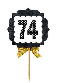 74th Birthday / Anniversary Gold Ribbon Hand Crafted Novelty Cupcake Decoration Toppers / Picks -12ct