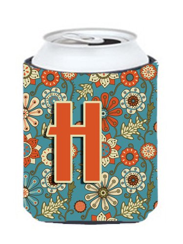 Letter H Flowers Retro Blue Can or Bottle Hugger CJ2012-HCC