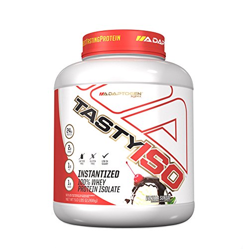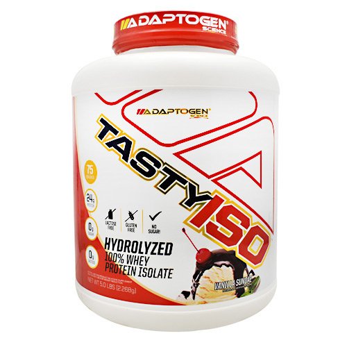 ReleaseDate : 2017-10-18 Studio : KEE HOLDINGS Inc. Publisher : KEE HOLDINGS Inc. Binding : Health and Beauty Product Description 24g Protein. 0g Sugar. 0g Lactose. lactose Free. Gluten Free. No Sugar! Hydrolyzed 100% Whey Protein Isolate. Advanced Delivery, Incredible Taste. Adaptogen Science has finally developed what we consider the best tasting 100% Hydrolyzed Whey protein isolate on the market. The quality is attained within its processing which uses state-of-the-art "Cold processed technology" technique, resulting in virtually NO fat, sugar or lactose. Hydrolyzed whey protein isolate provides only the richest source of protein having the highest value (Bv), which means more protein is absorbed by your body rapidly. each serving (1 scoop) provides 24 grams of pure and most bio-available 100% whey protein isolate and has been hydrolyzed for even faster absorption and digestion. Hydrolysis converts large protein molecules into the smallest peptides (di and tri-peptides) so they can get more absorbed, is the fastest source of protein your body can get it. Best protein available on the market today. each serving delivers 5.5g of BCAAs including 2.6g of Leucine and all intact micro fractions found in a quality Whey protein isolate. Tasty ISO is manufactured using the most advanced processing practice which ensures protein quality by weight. We guarantee 100% that what is on the label is in the product. Best Tasting ISO On the Market. By Far. 0