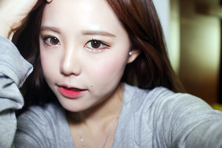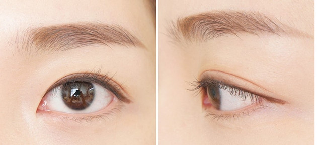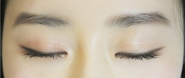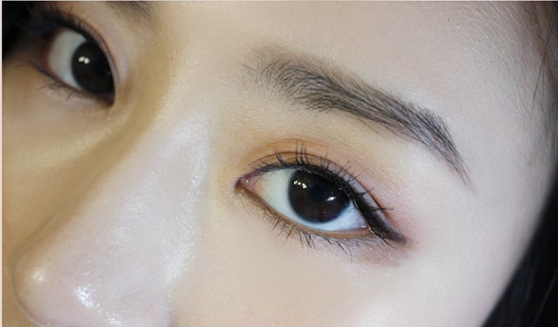 贴着睫毛根部,由眼尾向眼角分段描画,用食指将眼角向鼻部方向拉,然后再从眼角描画至眼尾,使眼线看上去纤细。用无名指轻拉下眼皮,然后再紧贴睫毛从眼尾到眼角描画下眼线。