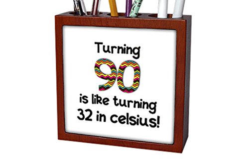 3dRose ph_184969_1 Turning 90 is Like Turning 32 in Celsius Humorous 90th Birthday Gift Tile Pen Holder, 5"