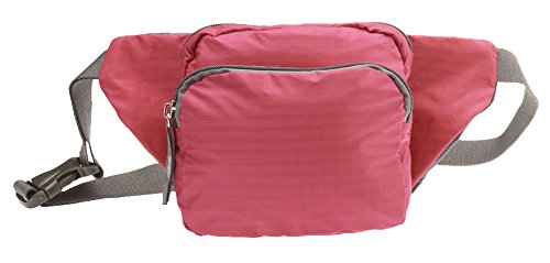 -. Feature : Lightweight and tear-resistant, ripstop nylon RFID fanny pack has 3 storage pockets with added moisture and odor control / The waist bag's back pocket is lined with RFID blocking material to prevent scanned transmissions from electronic pickpocket thieves / Two gusseted front compartments on the waist pouch fit cell phones, cords, tissues, sanitizer, lip gloss, pens and pads / Sewn in CoolMax backing wicks moisture away from the body on hot, humid day trips, while Agion treatment controls odor / Adjustable belt fits waists up to 44", measures 10.5" wide x 7" high x 5.5" deep, hand wash in cold water and lay flat to dry