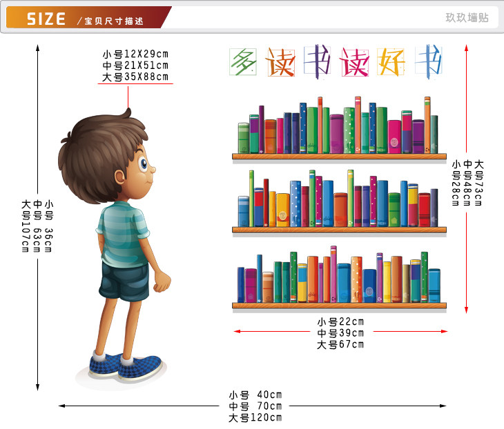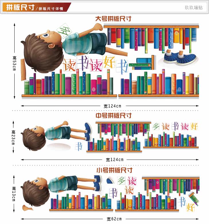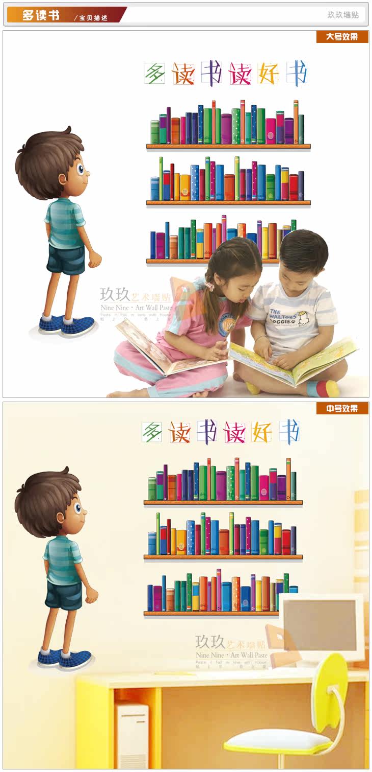 墙贴幼儿园小学校图书馆图书室读书学习阅读角卡通小人书架贴纸