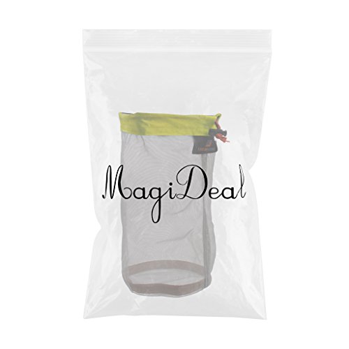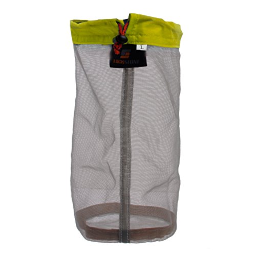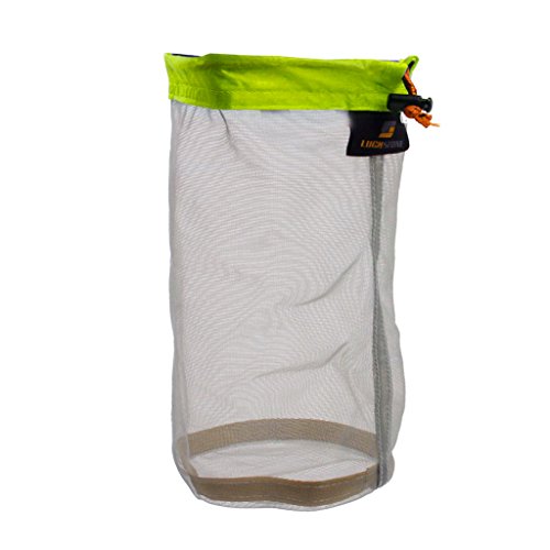 Multi-filament mesh for strength Gray mesh for better visibility and round base design Ultra Silk nano drawcord throat for smooth operation Double stitched and reinforced seams for greater durability Many people use this item for survival, hiking, camping, fishing, traveling, and gift idea, recreational Color: YellowGreen Material: Mesh Size: Approx 16.14 x 11.02 inch/ 41 x 28cm