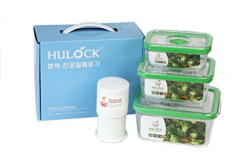 [HULOCK] 3-Pc Set Vacuum Airtight Food Container, BPA-Free, Includes Vacuum Pump For Easy Seal, For Storing Baby Food, Fresh Ingredients
