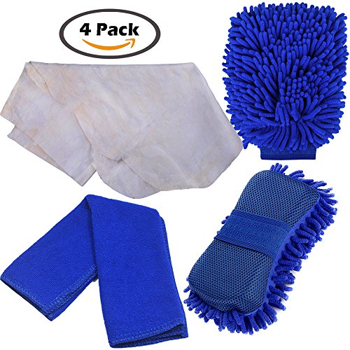 Car Wash Kits includes: 1*Ultra Soft Micro-Chenille Wash Mitt; 1*Microfiber All Purpose & Wheel Detailing Towel; 1*Microfiber MAX Premium Wash Sponge; 1*Genuine leather chamois Drying Cloth.