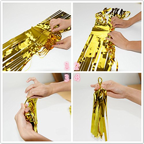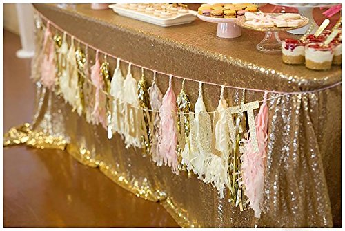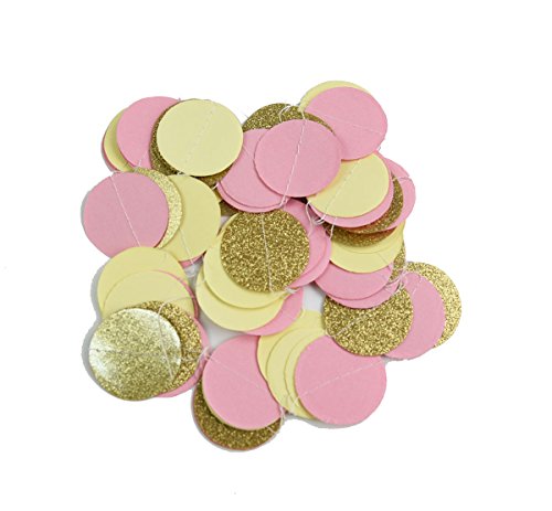 Pink and gold decorations baby shower backdrop package include:6 pcs tissue paper flowers:2 pcs baby pink(1*12inch+1*10inch)+2 pcs cream(1 12inch+1*10inch)+2 pcs Gold Polka Dot Tissue Paper Pom Poms 12inch+1*10inch); 1 pack of pink cream gold mixed color paper tassel with one white ribbon and using instruction,totally 12 sheets,each color comes with 4 pcs. 2pcs pink glitter gold cream mixed color of circle garland. Paper Garland Length: approximately 6.5 feet.