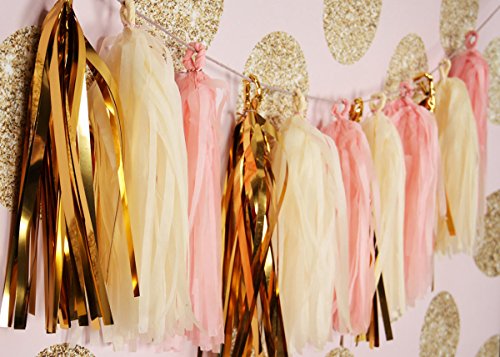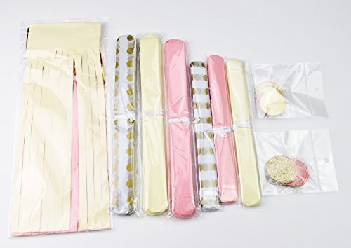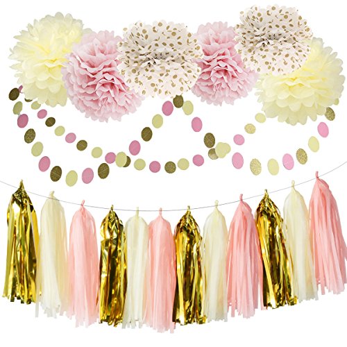 New Release bridal shower decorations kit/baby shower decorations/pink gold party/first birthday decoration tissue pom poms for girl, baby pink cream gold circle dot paper garland kit. A mixed bright color set that will light your party/wedding/baby shower,pink gold theme party, Bachelorette Party Decorations, or bridal paper decoration..
