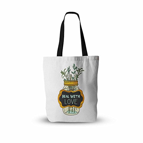 KESS InHouse "Pom Graphic Design Heal With Love Green Gold Illustration Everything" Tote Bag, 18" x 18", Multicolor