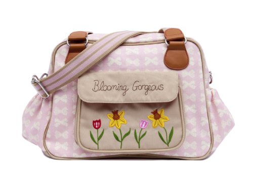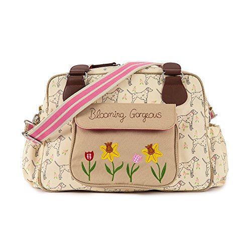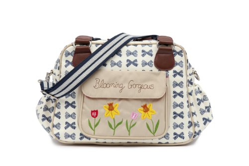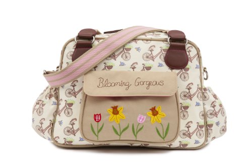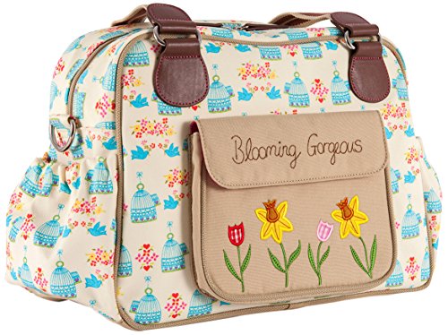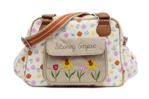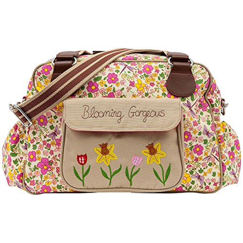 A vintage inspired shape is the Blooming Gorgeous bag with a beautiful daffodil applique on the outside front pocket. This bag is slightly wider giving you more room for all your baby bits and bobs. On the exterior of the bag there is a large canvas pocket with the Blooming Gorgeous slogan and patch and two side pockets in body fabric. The bag comes with an adjustable shoulder strap that is long enough to fit over any pram/buggy handle bars. Visit our features tab to find out more about the standard internal components.Feature