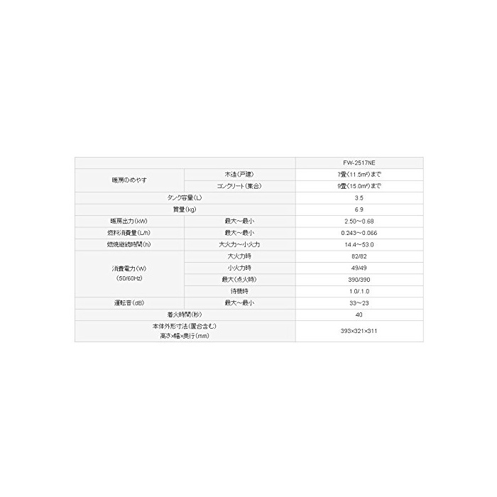 소비전력:최대(점화 시)390W/연소 시82W(대화력 시)49W(소화력 시)/대기 시1W