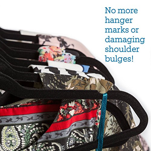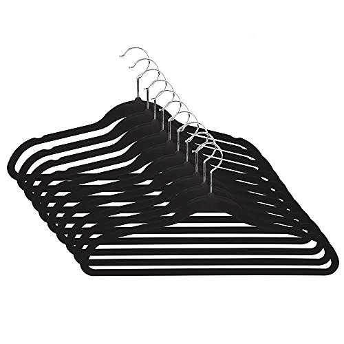 -. Feature : 50 Pack black velvet non-slip hangers Size: 45.5 x 24 x 1.2cm/ 17.7 x 9.4 x 0.47inch (W x H) / Feature: 360 Degree swivel, shiny, chrome hooks and notched shoulders which will make hanging clothes a simple pleasure! / Material: Comes with Flocked, Metal Hook, ABS Plastic. The soft texture of the velvet clothes hangers grips delicate items, sturdy and lightweight construction can hold clothes tightly and move easily / Fashine Premium Velvet Hangers (50 Pack) will efficiently help you organize and storage your and your families' clothes. A true space saver for your closet. / Great for hanging Suits, Jackets, Pants, Shirts, Dresses, Blouses & Accessories, and the sturdy construction can hold and support most garments