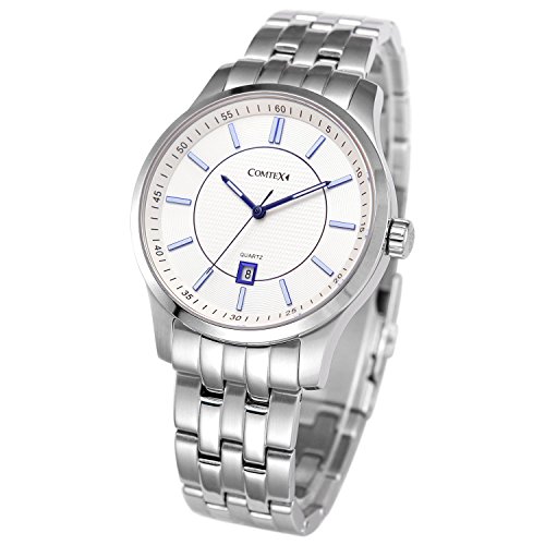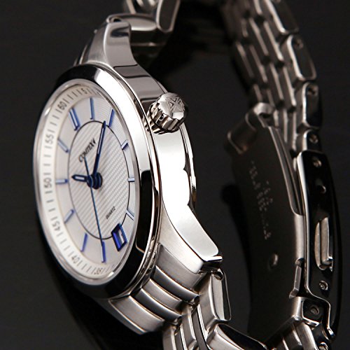 Comtex 손목시계 블루 스테인레스 밴드 캘린더 표시 쿼츠 시계 레이디스