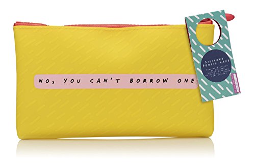 - Soft touch silicone pencil case in yellow with contrasting zipper