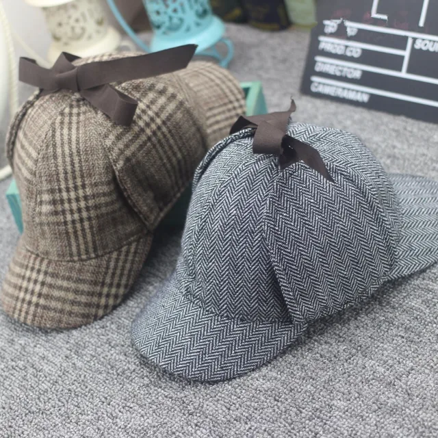 | [해외]고품질 코스프레 cap 탐정 셜록 홈즈 deerstalker 모자 회색 컵 새로운 베레모 cap vestidos |