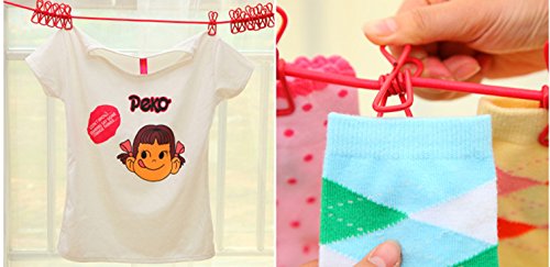 - What makes it unique is the black clips that restrain the 12 pieces of clothespins from sliding. Therefore, clothes won¡¯t glide to the center. Again, the clips can be moved smoothly from left to right and vice versa by press and hold the little button on the top of the clips. Those who prefer the freshness of line dried linen can rely on this clothesline. It can be used in hot, humid, wet and dry environments.