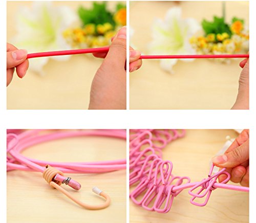 Retractable Portable Travel Elastic Clothesline Adjustable Clothesline with 12pcs Anti-Skid Clothespins and windproof buckles for Outdoor and Indoor Use