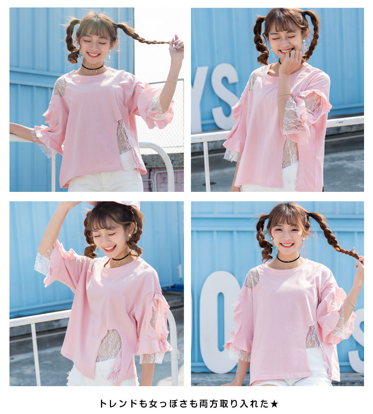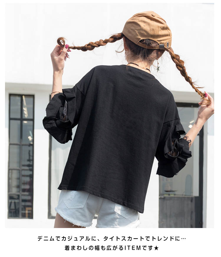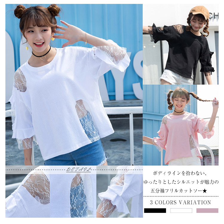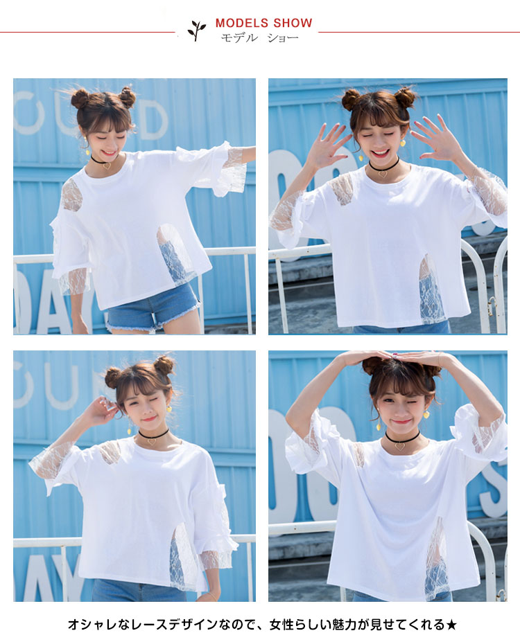 | ボディラインを拾わない、ゆったりとしたシルエットが魅力の五分袖フリルカットソー★ オシャレなレースデザインなので、女性らしい魅力が見せてくれる★トレンドも女っぽさも両方取り入れた★ デニムでカジュアルに、タイトスカートでトレンドに…着まわしの幅も広がるitemです★ | |