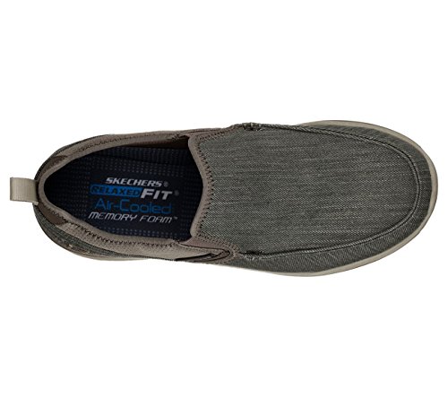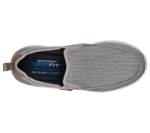 Product Description Comfort and easygoing style hits one out of the park with the SKECHERS Relaxed Fit® Garvey - Velope shoe. Soft woven canvas fabric upper in a slip on casual comfort loafer moc with stitching and overlay accents. Air Cooled Memory Foam insole. 0