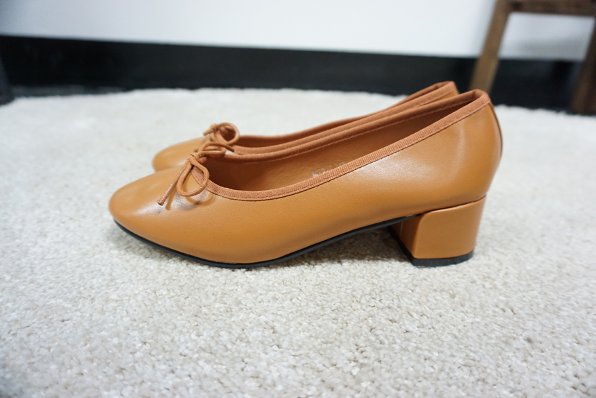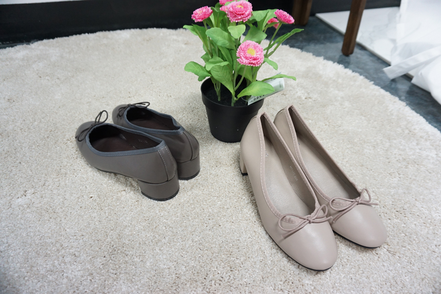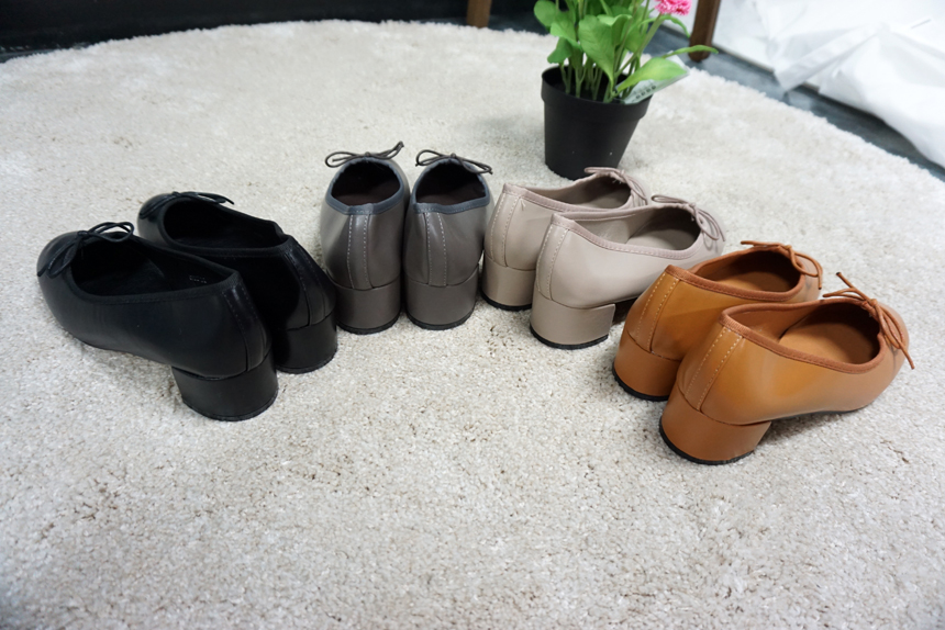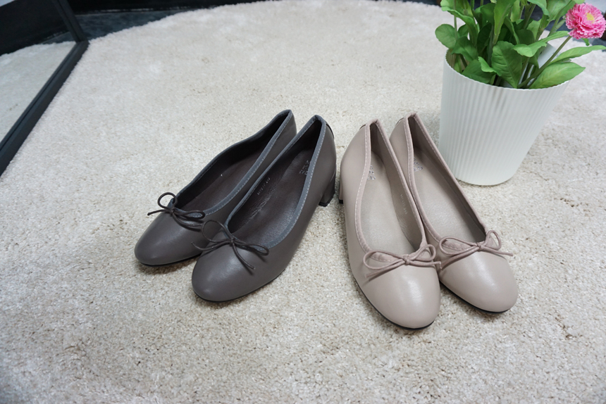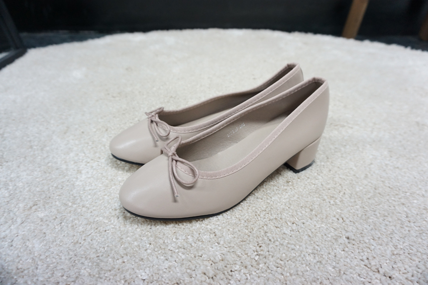 Comfortable Ribbon Middle Heel Pumps Low Heel Women Shoe Leather