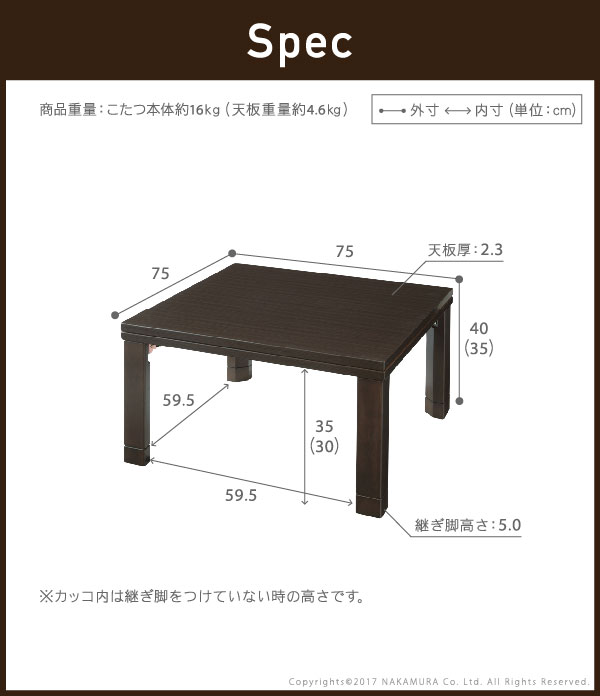 ●天板サイズ:幅75x奥行75cm・厚み23mm・約4.6kg