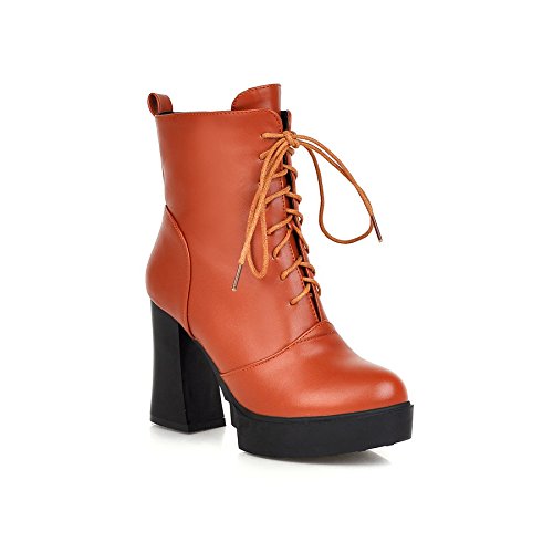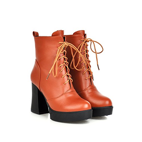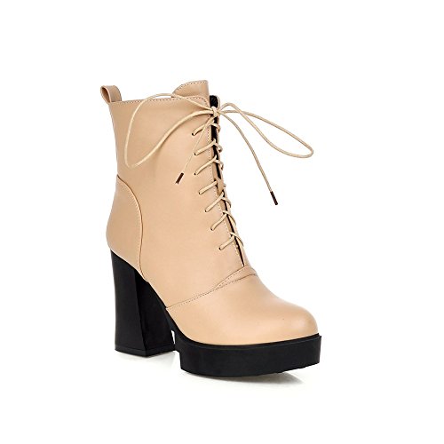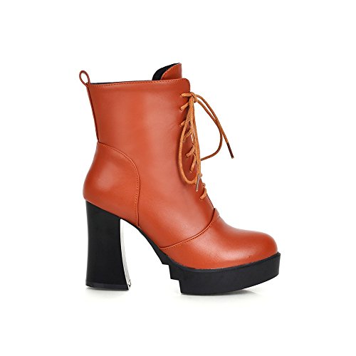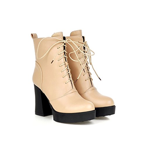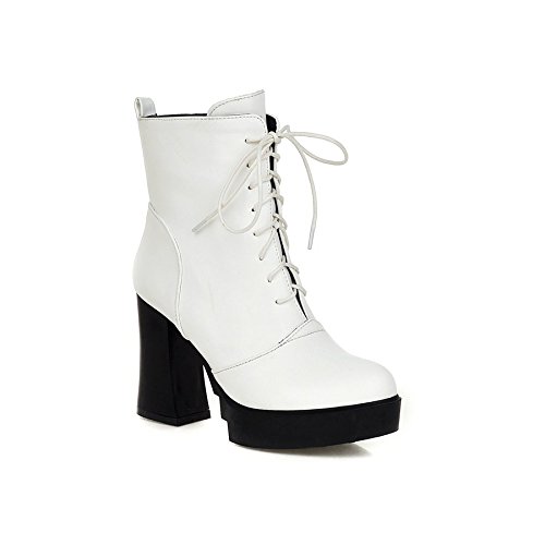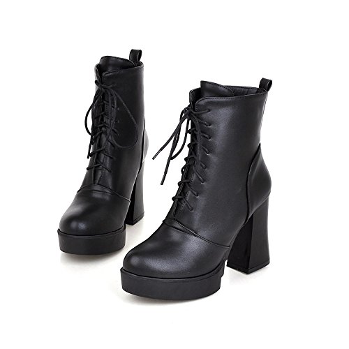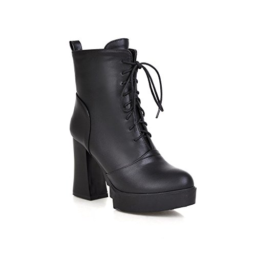 (BalaMasa)/Women's/Boots/DIRECT FROM USA/BalaMasa Womens Kitten-Heels Lace-Up Solid Round-Toe Urethane Boots ABL09659