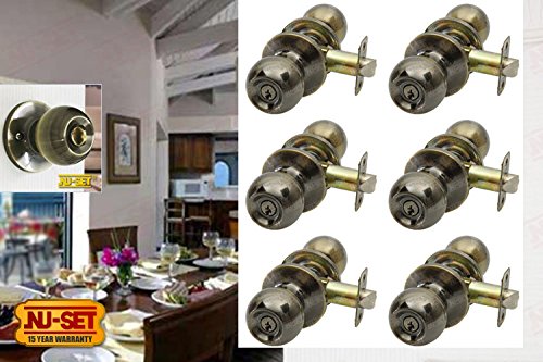 -. Title : 6 Pieces of Nuset Fremont(US5) Door Entry Knob Locks, Keyed Alike, Antique Brass