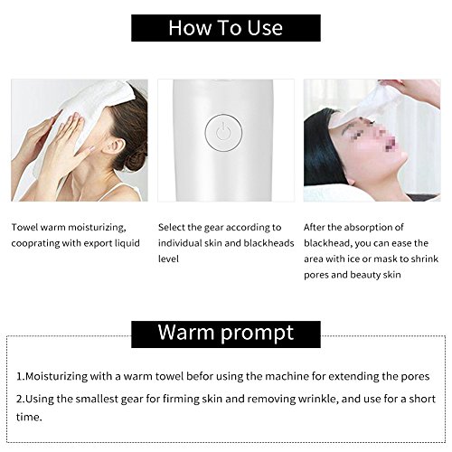 Studio : ZJchao Publisher : ZJchao Binding : Kitchen Product Description ◆Small Circular Hole Head: It is applied to thin and weak or the normal skin ◆Big Circular Hold Head: The surrounding areas of the eyes are not suggested to apply, but the rough and wronkly skins, and body and elbow can be applied ◆Oval Hole Head: It is applied to facial parts like cheek,comer of the eyes,wing of nose,surrounding areas of the mouth. ◆Soft Microcrystal Head: The surround areas of the eyes are not suggest to apply,and rough and wrinkly areas,and body parts like the back and arms or too thin parts are not to apply. Specifications: Condition: 100% Brand New Item Type: Pore Cleaner Material: ABS Color: White Power: USB Charging Rated Current: 200mA Output Voltage: 3.7V Output Power: 0.7W Package Weight: 330g Size: Approx. 180 x 39 x 35mm/ 7.09 x 1.54 x 1.38inch Package Includes: 1 x Pore Cleaner 1 x Big Circular Hole Head 1 x Small Circular Hole Head 1 x Oval Hole Head 1 x Diamond Head 8 x Sponges 1 x USB Cable Please Note: 1. Don't press the head hard on your skin. 2. It is not suitable for the skin with wound and scar.