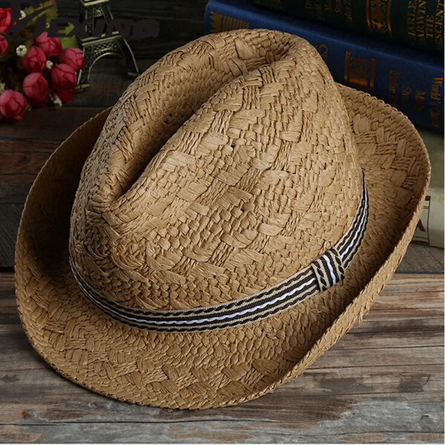 | [해외][Dexing] 세련된 여성 남성 여름 페도라 트릴 파나마 손으로 만든 밀짚 모자 비치 복장 갱스터 캡 |