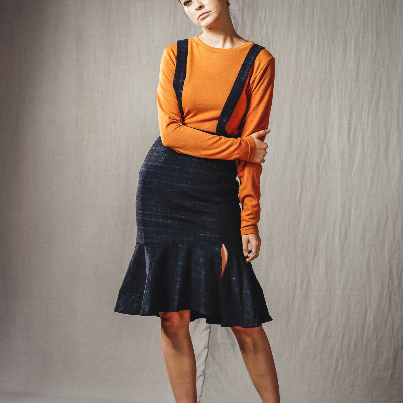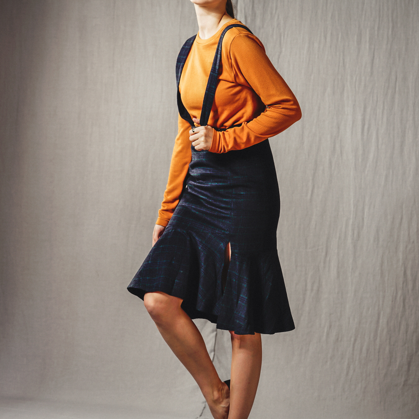 스트랩 탈부착이 가능하여 멜빵원피스로도 스커트로도 코디 가능한