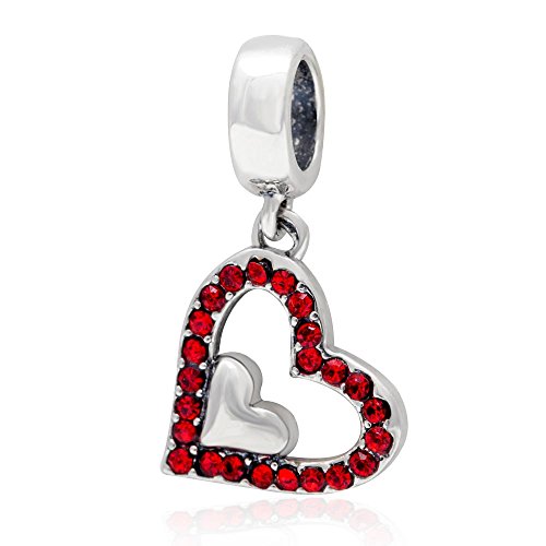 SoulBeads Authentic 925 Sterling Silver Crystal Dangling Love Heart Charms Compatible with Snake Chain Bracelets